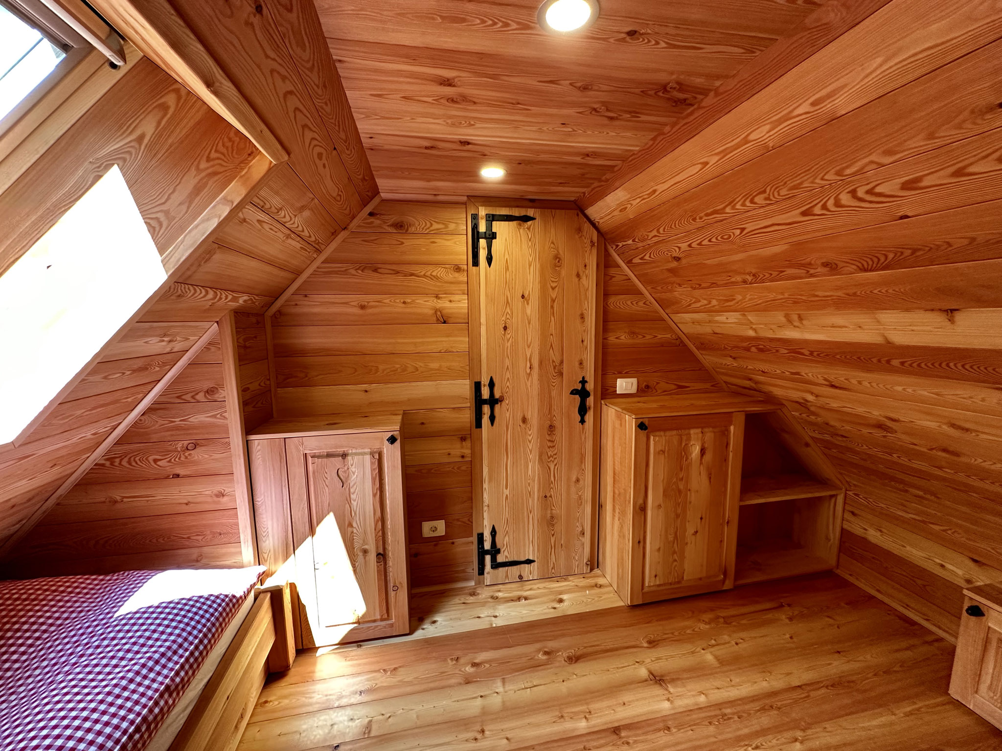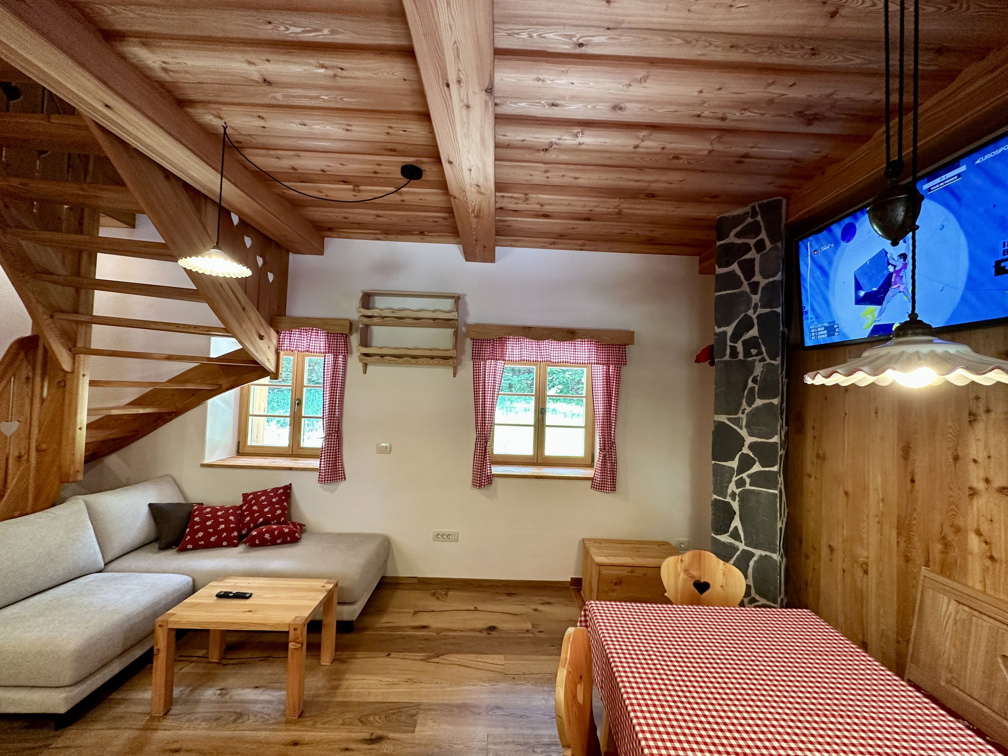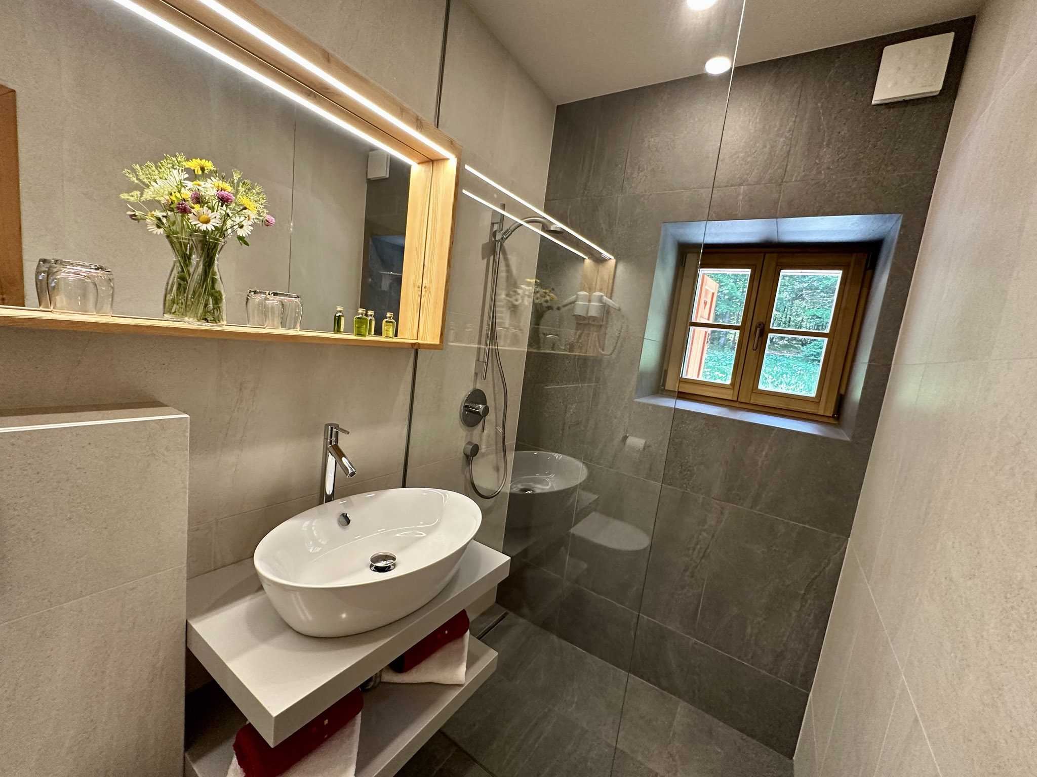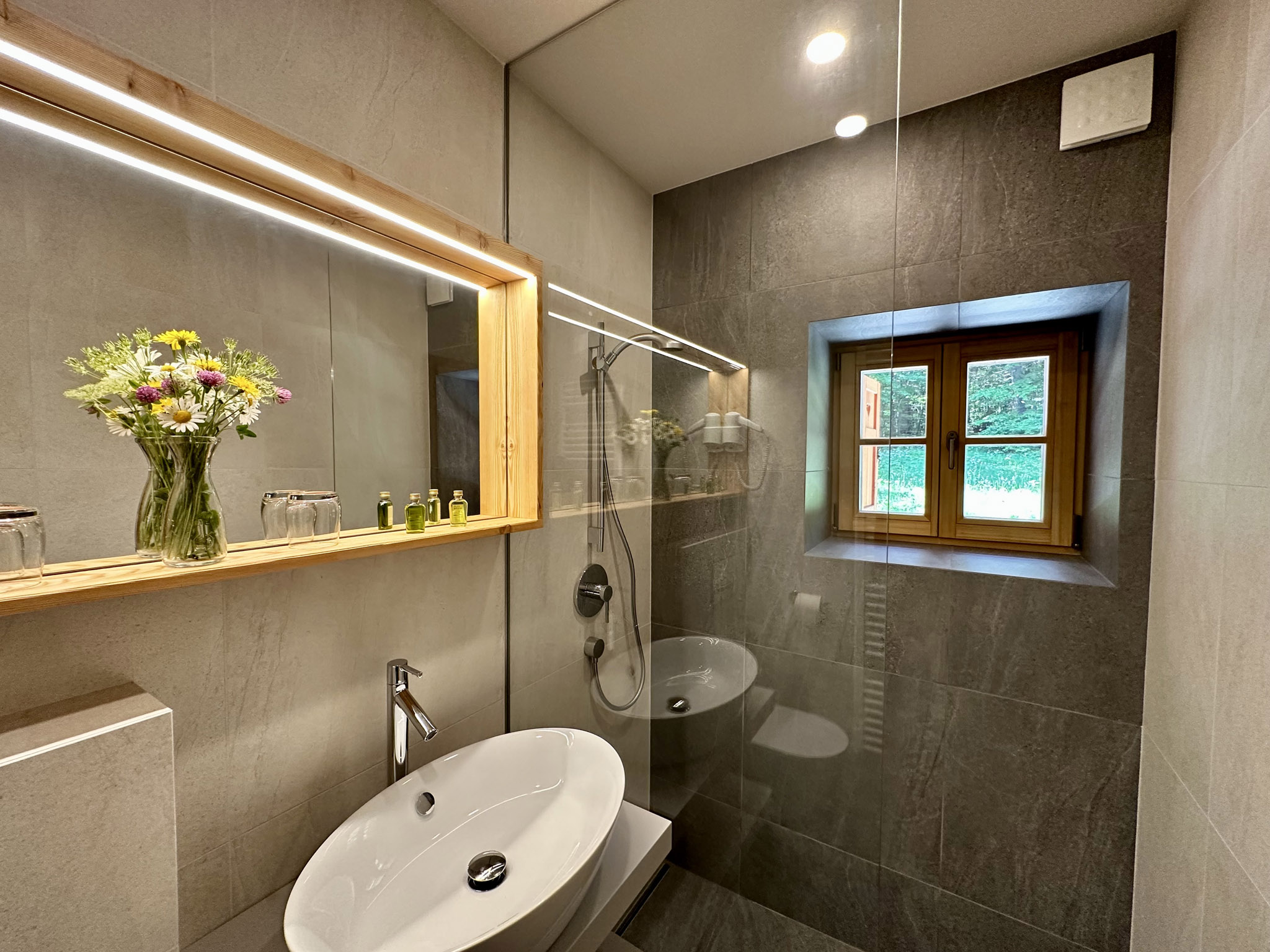Apartma je velik 63m2 in ima lastno kopalnico ter gleda na bližnje hribe.